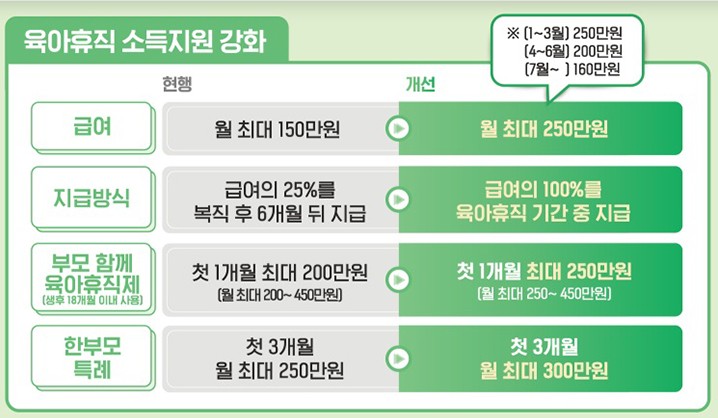 내년부터 육아휴직 급여는 월 최대 250만 원으로 인상됩니다.
