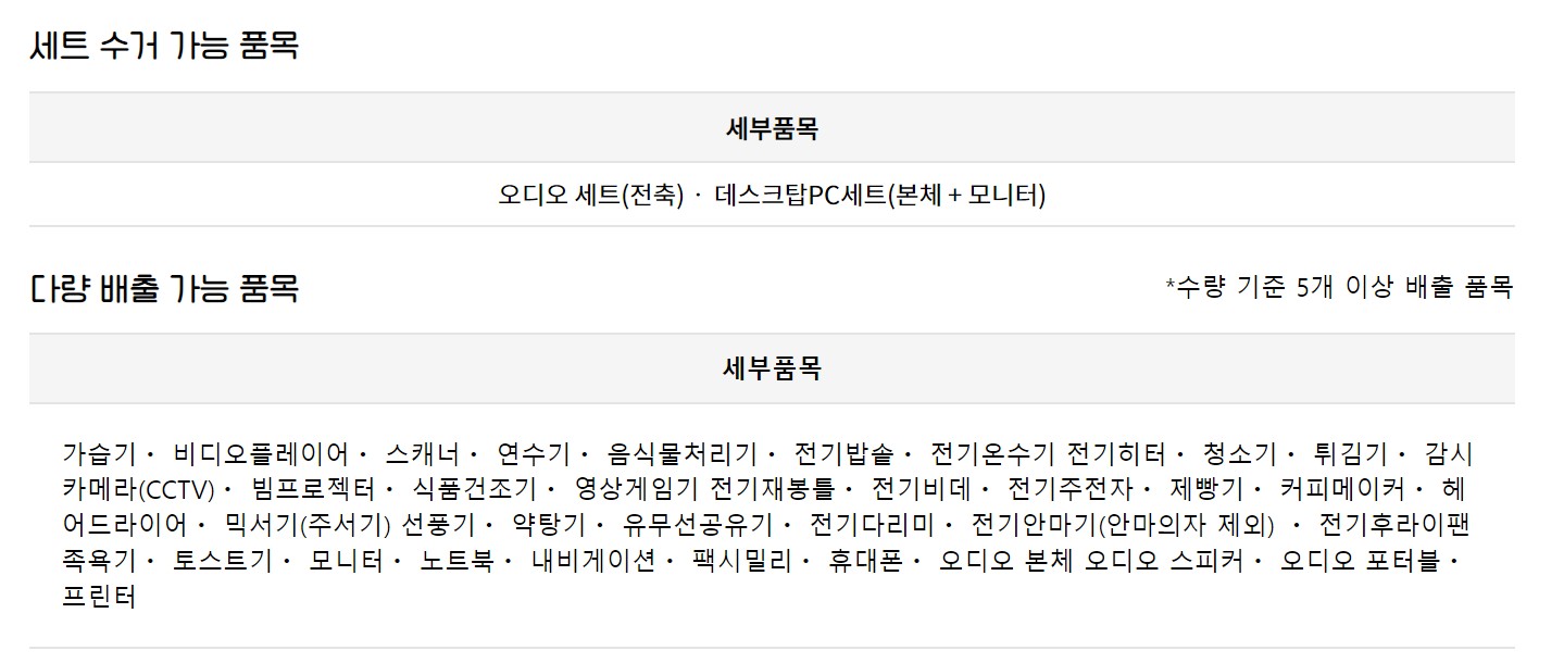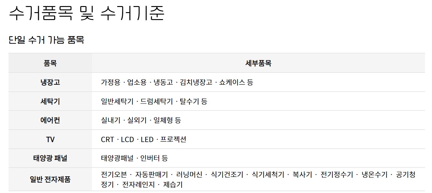 - 정확한 정보 제공 : 수거할 제품의 종류와 상태를 정확히 알려주셔야 원활한 수거가 가능합니다.