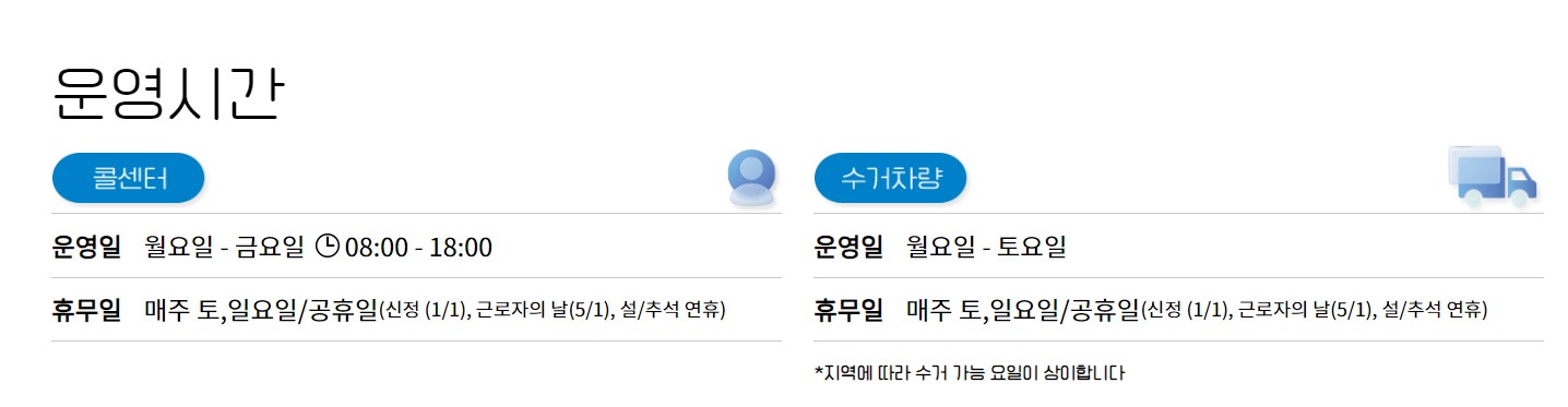 - 전화 걸기 : 고객센터에 전화를 걸어 수거를 요청합니다.