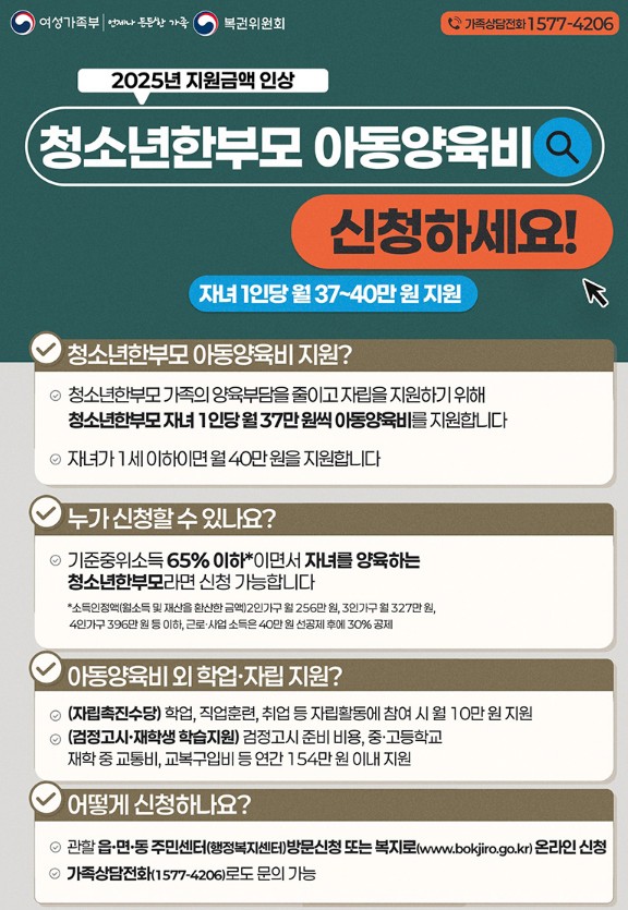 이번 인상은 특히 청소년 한부모가족과 미혼모·부가족에게 큰 도움이 될 것으로 기대됩니다.
