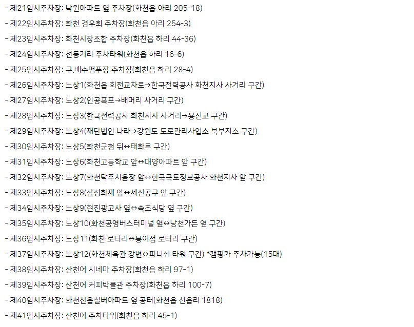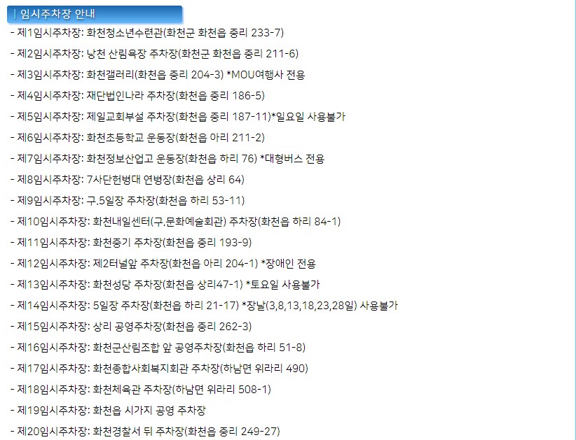 화천 산천어축제 기간 동안 주차 공간이 제한적이기 때문에, 주차에 대한 사전 준비가 필요합니다.